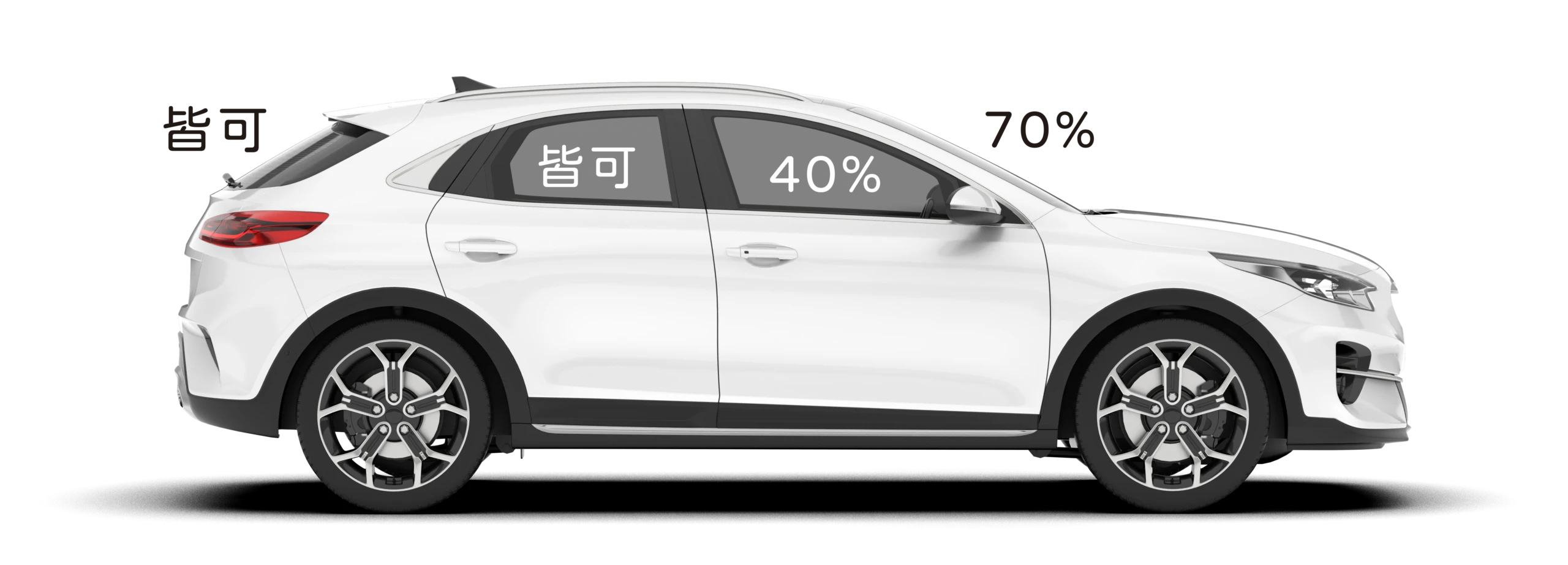 在兼顧防曬隔熱效果的同時,確保行車安全與辨識度。- 後側窗及後擋:依照自身習慣來做選擇無特別規定。